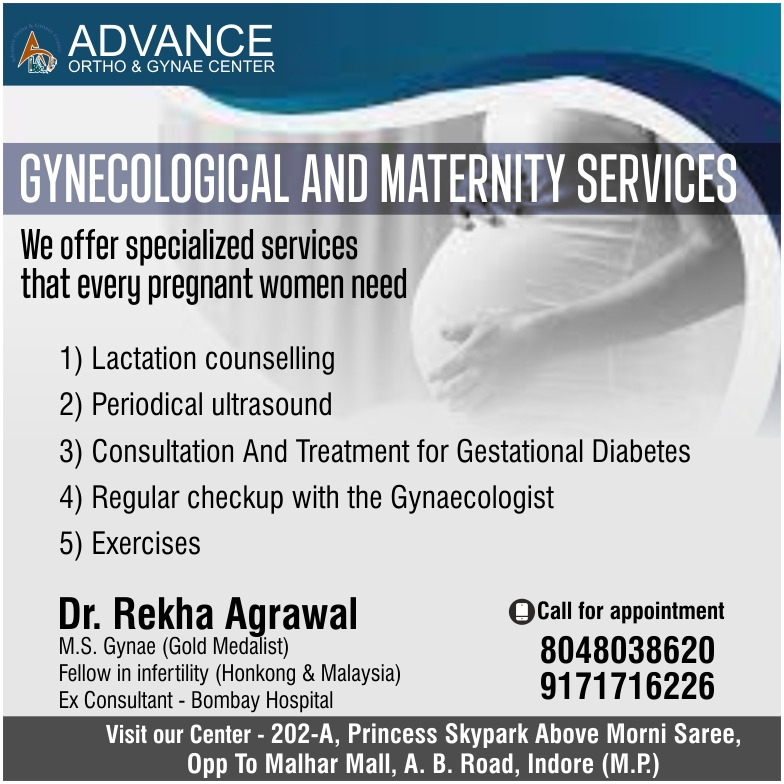 Best Gynaecologist and Maternity Services in Indore Book one of the best female doctor Dr. Rekha Agrawal for your maternity services. She is well experienced in her field and able to handle the risk factor very efficiently. If you are worried about your gynaecologist and maternity services then call us to book your appointment.