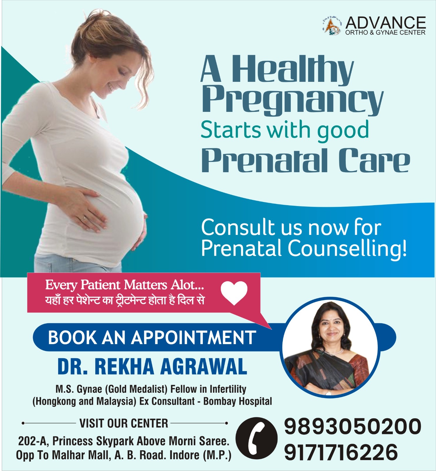 Experience exceptional prenatal care with Dr. Rekha Agrawal best gynecologist in Indore at Advance Ortho & Gynae Center, Indore. Dr. Rekha Agrawal provides comprehensive care for women at every stage of pregnancy, ensuring the health and well-being of both mother and baby. From regular check-ups and advanced screenings to personalized advice, her expertise ensures a smooth journey to motherhood. Trust Dr. Rekha Agrawal best prenatal care specialist in Indore for compassionate, expert guidance throughout your pregnancy. Your health, our priority.
