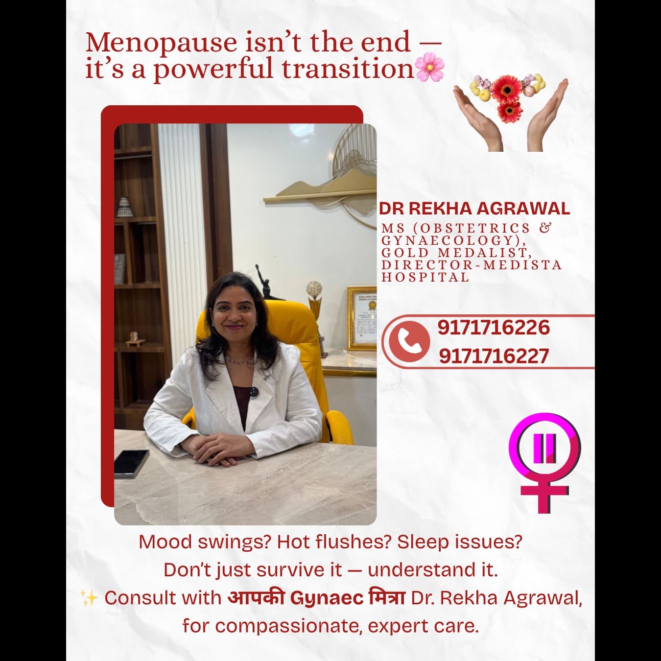 Hot flushes, mood swings, sleep issues… these are not signs of weakness but a powerful transition your body goes through. 🌷 Don’t just suffer in silence — understand it, embrace it & take the right care. With the right guidance, this phase can be smoother, healthier & more empowering. 💫 Let’s normalize conversations about menopause — because every woman deserves support, compassion & expert care. 📞 Book your consultation today. Because you don’t just need treatment… you need care that understands you. 💕 — Dr. Rekha Agrawal