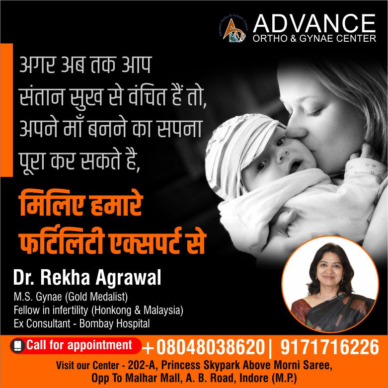 इंदौर में आईवीएफ ट्रीटमेंट के लिए सर्वश्रेस्त्रा स्त्री रोग विशेषज्ञ हर जोड़ी के लिए माता-पिता बनना एक सपना होता है, इसलिए जब कोई इस सपने को पूरा नहीं कर पाता है, तो वह संतानोत्पादन की सुखद योजनाएं अपनाते हैं। किंतु दुःख की बात है कि किसी कारण से वे माता-पिता नहीं बन पाते हैं, और इसलिए वे किसी बेहतर विकल्प की तलाश करते हैं जिसके माध्यम से उनका सपना पूरा हो सके।आधुनिक चिकित्सा के क्षेत्र में आजकल कई ऐसे विधान मौजूद हैं जिनके द्वारा आप माता-पिता बनने की खुशी प्राप्त कर सकते हैं। इनमें से एक है इन विट्रो फर्टिलाइजेशन (आईवीएफ) जिसके माध्यम से अनुपातिता की समस्या का समाधान संभव है। अधिक जानकारी के लिए आप डॉ. रेखा अग्रवाल से परामर्श ले सकते है डॉ. रेखा अग्रवाल इंदौर की सर्वश्रेस्त्रा स्त्री रोग विशेषज्ञ है, जो आईवीएफ द्वारा कई जोड़ो का माता पिता बनने का सपना पूरा करने में मदद करती है। अभी कॉल करे डॉ. रेखा अग्रवाल की सलाह से आप भी माता पिता बनाने का सपना पूरा करे।