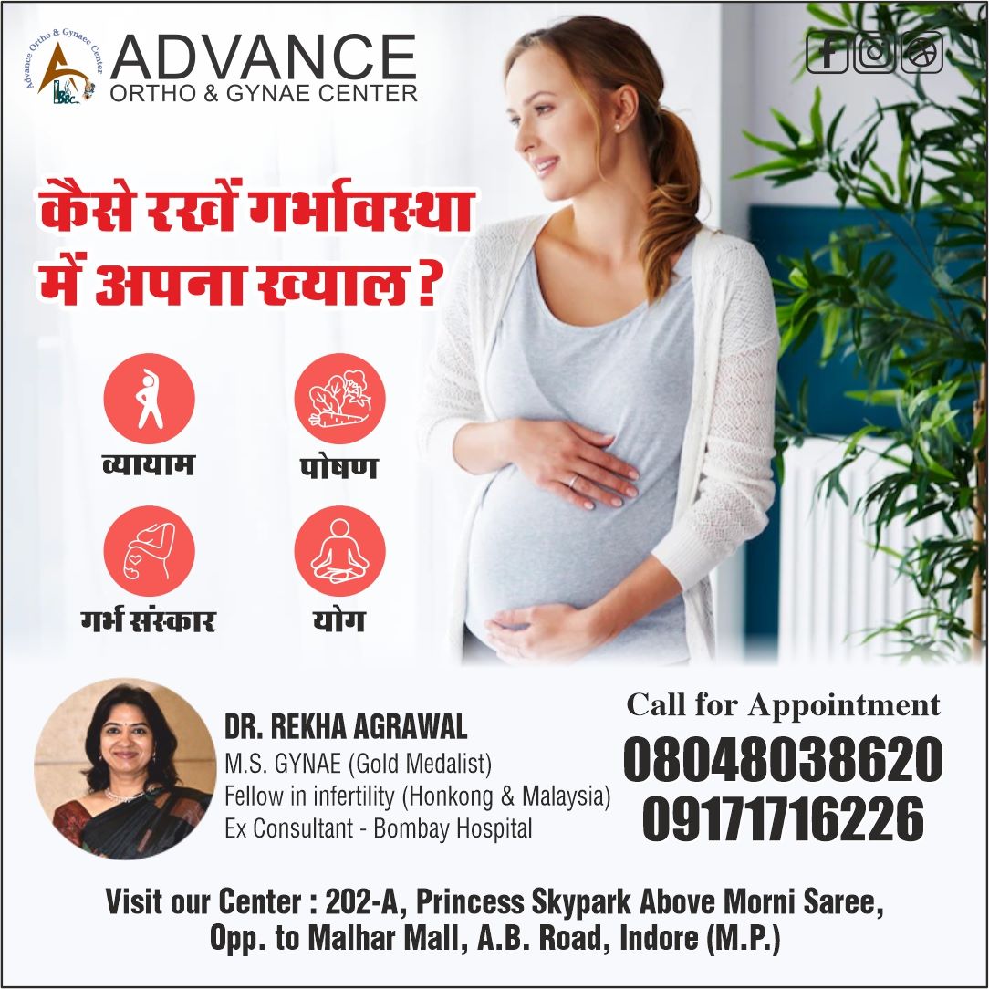इंदौर गर्भावस्था देखभाल के लिए अच्छी डॉक्टर कैसे रखें गर्भावस्था में अपना ख्याल ? गर्भावस्था में अपना ख्याल रखने के लिए कई तरीके हैं। जैसे आपको नियमित व्यायाम करना चाहिए। यह आपके शरीर को स्वस्थ और फिट रखने में मदद करता है। दूसरे, आहार का ध्यान रखें और पोषणपूर्ण आहार लें। ऐसा भोजन करने से आपके और शिशु के विकास में मदद करता है। तीसरे, गर्भ संस्कार करने का प्रयास करें। यह आपके और आपके शिशु के बीच एक संबंध बनाने में मदद करता है। चौथा, योग करने का अभ्यास प्रयास करें। योग स्त्री के शारीरिक और मानसिक स्वास्थ्य को सुधारने में मदद करता है। इन सभी चीजों को याद रखें और आप गर्भावस्था में खुश और स्वस्थ रहेंगी। अगर आप अधिक जानकारी प्रेगनन्सी से जुडी चाहती है तो आप डॉ. रेखा अग्रवाल जो इंदौर गर्भावस्था देखभाल के लिए अच्छी डॉक्टर मानी जाती है।आप डॉ. रेखा अग्रवाल जी से सलाह लेने के लिए एडवांस ऑर्थो एवं गायनी सेंटर पर संपर्क अपना अपॉइंटमेंट बुक करा सकते है। तो देर न करे अभी कॉल करे।