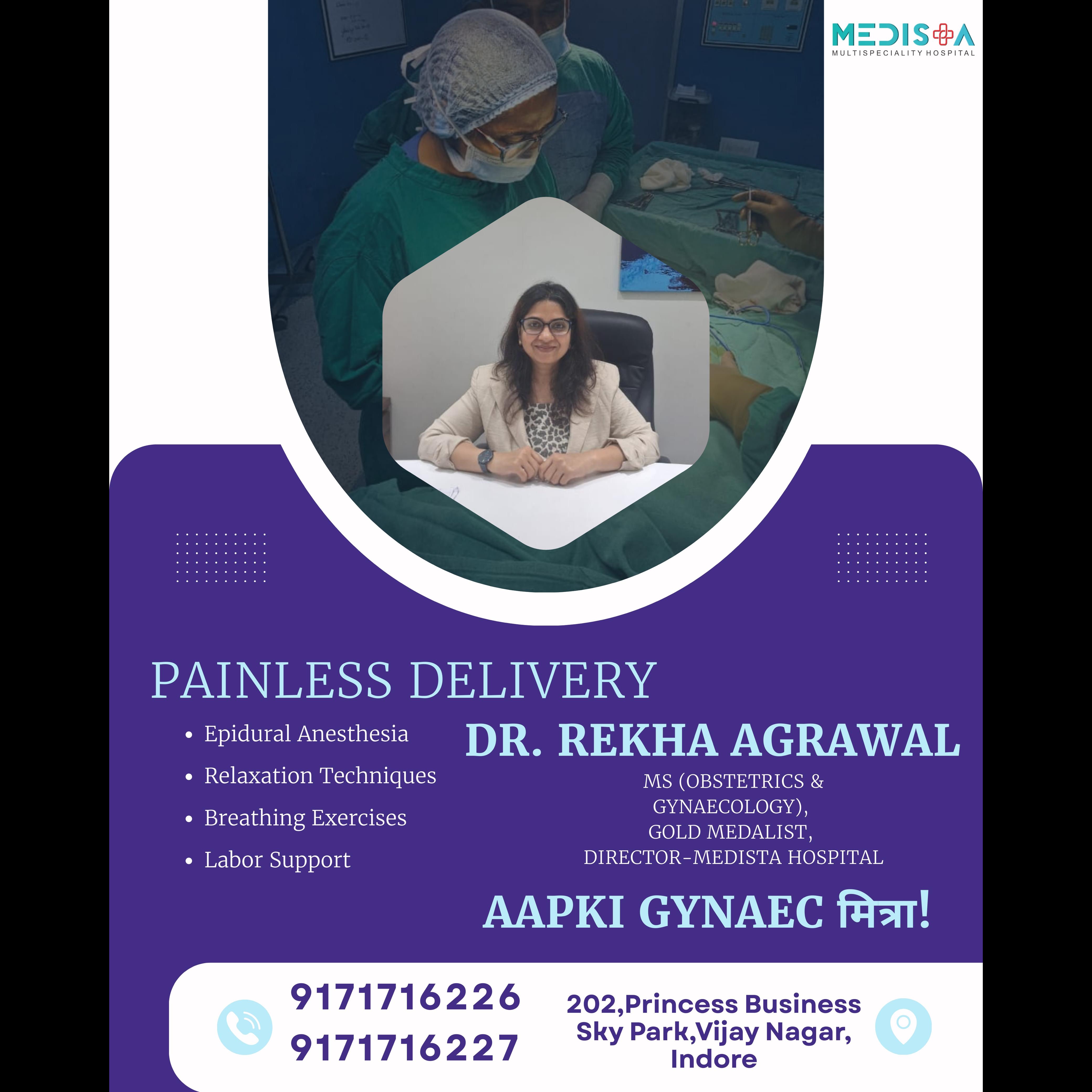 🌸 Painless Delivery – A New Era of Motherhood Care 🌸 Motherhood is one of the most beautiful journeys a woman can experience. It’s filled with dreams, hopes, and the joy of bringing a new life into this world. But alongside that joy, many women often carry the fear of labor pain. For generations, childbirth has been linked with pain and struggle, but today, with advanced medical science and compassionate care, the story is changing. Now, childbirth can be safe, comfortable, and even painless. ✨ At Medista Multispeciality Hospital, Dr. Rekha Agrawal – MS (Obstetrics & Gynaecology), Gold Medalist – is dedicated to making your delivery experience stress-free and empowering. With years of expertise and a patient-friendly approach, she ensures that mothers don’t just give birth, but also cherish the journey of childbirth. So, what makes Painless Delivery special? 💜 🔹 Epidural Anesthesia – Modern science has given mothers a blessing in the form of epidural anesthesia. It helps minimize pain while keeping you conscious and active throughout labor. This way, you can welcome your little one without unnecessary suffering. 🔹 Relaxation Techniques – Stress and anxiety often intensify labor pain. Through guided relaxation methods, breathing support, and a calming environment, the delivery process becomes smoother and more positive. 🔹 Breathing Exercises – Special breathing techniques not only keep you calm but also provide your body with the oxygen it needs, supporting both mother and baby during labor. 🔹 Labor Support – Every mother deserves emotional and medical support during childbirth. From continuous monitoring to compassionate counseling, the team ensures you feel cared for and confident at every step. Motherhood is not just about the baby’s health but also about the mother’s comfort, dignity, and safety. With painless delivery options, mothers can now focus on the joy of meeting their child rather than fearing the pain of labor. 🌷 Imagine holding your baby for the first time with a smile, not exhaustion. Imagine a delivery process where your comfort is as important as your child’s safety. That’s what Dr. Rekha Agrawal and her team believe in – creating a birthing experience that is safe, supported, and truly memorable. Every woman deserves the right to a safe and comfortable delivery. Whether it’s your first pregnancy or not, the thought of childbirth can feel overwhelming. But with the right guidance, technology, and care, it transforms into an empowering experience where you feel strong, supported, and in control. 💜 Dr. Rekha Agrawal isn’t just a doctor; she’s your Gynaec Mitra. Someone who listens, understands, and stands by your side in every step of this beautiful journey. From prenatal checkups to delivery and postnatal care, she ensures complete support tailored to your unique needs. ✨ A healthy mother means a healthy baby – and when delivery is painless, the journey becomes even more beautiful. So to all the soon-to-be mothers: let go of your fears, trust the process, and embrace the new life waiting to meet you. With painless delivery, you’re not just giving birth, you’re experiencing the beginning of motherhood in the most comfortable, safe, and empowering way possible. 🌸 Choose care. Choose comfort. Choose painless delivery with Dr. Rekha Agrawal – your trusted partner in motherhood. 🌸
